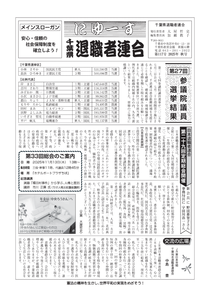 千葉県退職者連合「にゅーす」2025年秋号(第117号 2025.10)